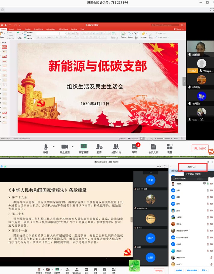 面对今年突如其来的新冠肺炎疫情,以习近平总书记为核心的党中央及时明确地把生物安全纳入国家安全体系。大家认真学习了《习近平总书记关于生物安全的重要讲话精神》,从生物安全的概念,生物安全的重要性,以及如何加强生物安全能力建设的措施等多方面,加强了对生物安全的理解。大家一致认为,将生物安全纳入国家安全体系,有助于加快构建维护国家生物安全的政策、路径和举措,提升国家安全治理的能力和水平。此外,教职工们还观看了中央电视台的国家安全教育宣传片。通过线上线下的政治学习,教职工们都纷纷表示要警惕间谍分子,提高自我的政治定力,努力用习近平新时代中国特色社会主义思想武装头脑,坚定不移地维护国家安全。