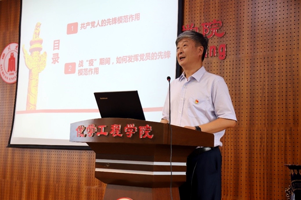 全国党建样板支部、化学工程系党支部副书记谢锐同志代表先进党支部交流发言。研究生第二党支部书记刘郭洁代表优秀共产党员及党务工作者交流发言。