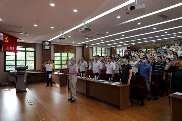 大会举行了“重温入党誓词、牢记使命担当”活动。在公司关心下一代工作委员会副主任、有63年党龄的老同志梁明征带领下,全体与会党员同志一起铿锵有力地宣读入党誓词、铭记共产党人的初心和使命!