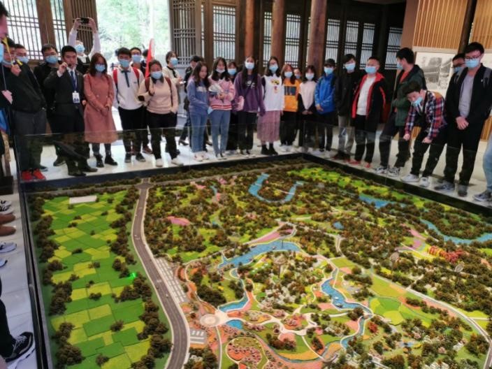 上午9点,同学们在工作人员带领下参观了“三医”创新中心三期规划展示中心,了解到温江区目前的经济社会定位及发展现状。