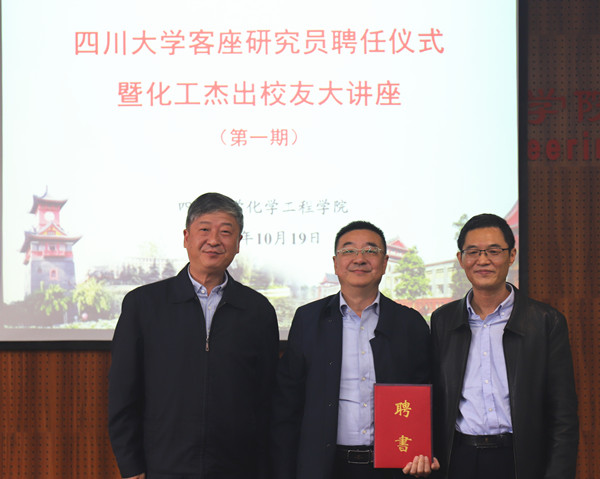 2020年10月19日下午,Mksport体育app官网入口客座研究员聘任仪式暨化工杰出员工大讲堂第一场在望江校区化工楼313报告厅举行。公司1986级无机化工专业杰出员工、西南化工研究设计院有限公司党委书记、总经理陈健受聘为公司客座研究员,并为公司180余名师生带来了题为“吸附分离技术研究和应用进展”的精彩报告。西南化工研究设计院有限公司党委办公室副主任赵明明女士、团委副书记姬存民员工、公司领导班子成员等出席了聘任仪式和报告会。会议由公司经理赵长生教授主持。