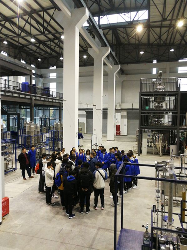 四个班上午九点及十一点分两批进入卓工中心,工程实验中心的吴潘、左炀老师热情接待大家。一进门看到许多的仪器设备,以及一些学长学姐们在做实验。每个同学都充满了好奇,跃跃欲试,想要进一步观看老师们课上提到的那些设备。听完吴老师的讲解后,同学们迅速分散开,奔向“那些神奇的大家伙们”。在卓工中心的一楼我们看到了许多化工实验需要用到的基本设备,如连续结晶工艺实训装置、精馏实验装置、吸收解吸实验装置等等。在我们参观各种仪器设备的时候,吴老师和左老师细致地为我们解说,并耐心回答同学们的提问。老师有时候也会问我们一些问题。