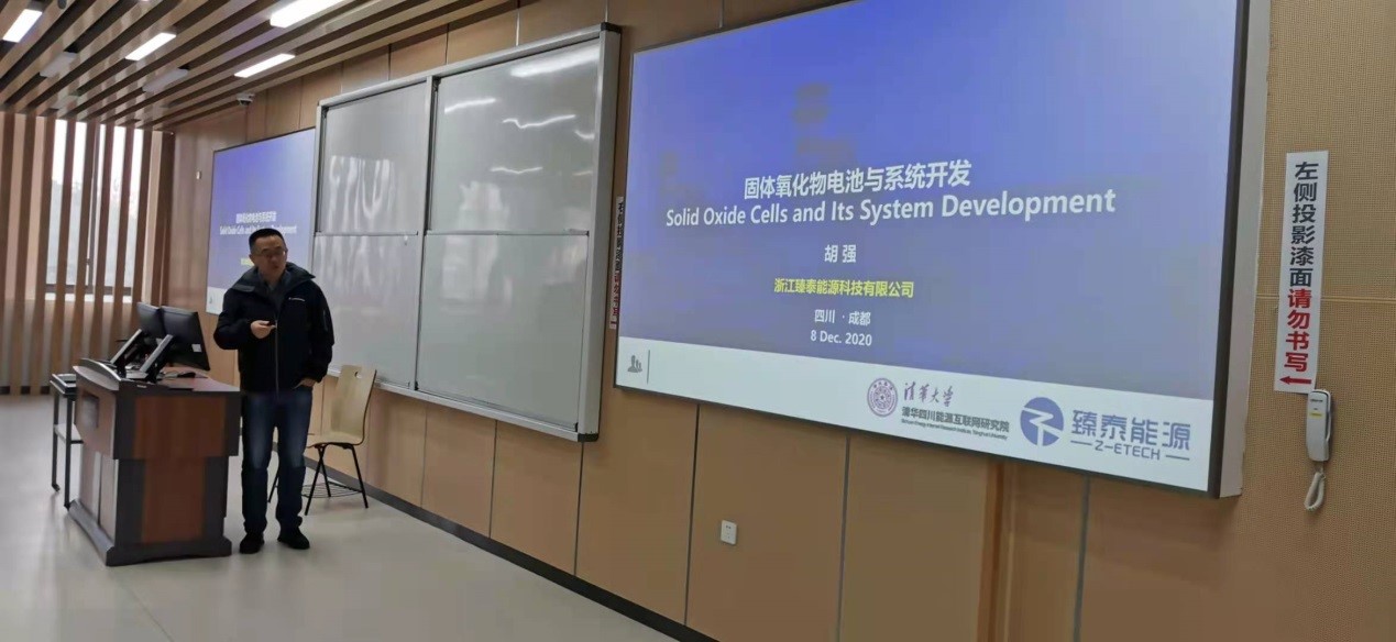 2020年12月8日,清华四川能源互联网研究院氢能所所长胡强研究员应邀来公司进行学术交流,并在Mksport体育app官网入口江安校区综合楼C座C304教室为公司师生作了题为“固体氧化物电池及其系统开发”的学术报告。Mksport体育蒋炜教授、周雪梅研究员、刘长军副教授,吴潘老师和公司本科和硕士研究生数十人参加了本次学术交流活动,活动由刘长军副教授主持。