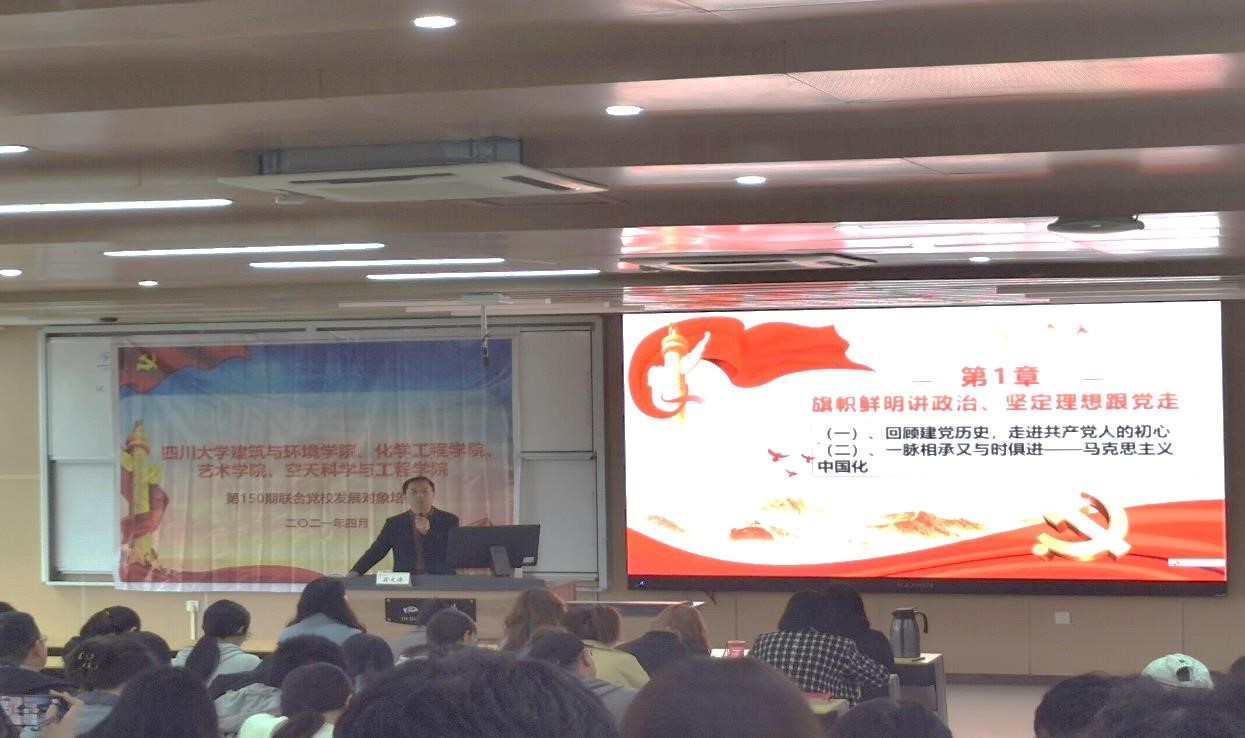 2021年4月11日上午9点40,Mksport体育、建筑与环境公司、艺术公司、空天科学与工程公司第150期联合党校发展对象培训班第二讲“坚定理想信念,赓续精神血脉”在江安校区综合楼C座207教室顺利进行。本次课程的主讲嘉宾是Mksport体育app官网入口建筑与环境公司党委书记蒋文涛老师。本次主讲的目标和要求是在学思践悟中坚定理想信念,在奋发有为中践行初心使命。