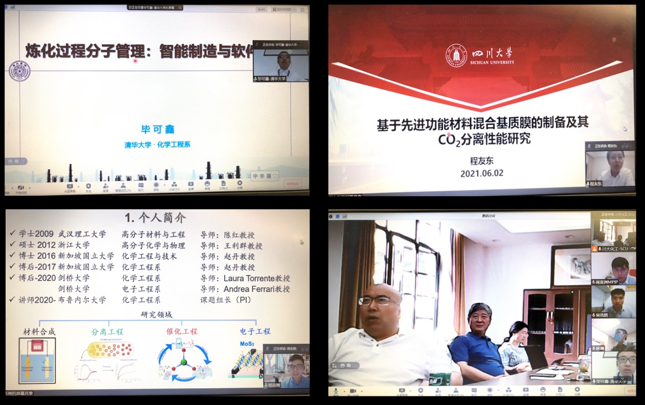 Mksport体育于2021年6月2日在望江校区化工楼227会议室,成功召开了Mksport体育app官网入口第九届全球青年学者论坛——化工分论坛。来自美国西北大学、阿卜杜拉国王科技大学、英国布鲁内尔大学、澳大利亚蒙纳什大学、新加坡国立大学、荷兰代尔夫特理工大学和清华大学等全球一流高校和科研院所的20多位优秀青年学者与公司师生相聚云端,开展了线上的精彩学术报告分享与学术交流。本次云论坛由公司副经理钮大文教授主持。