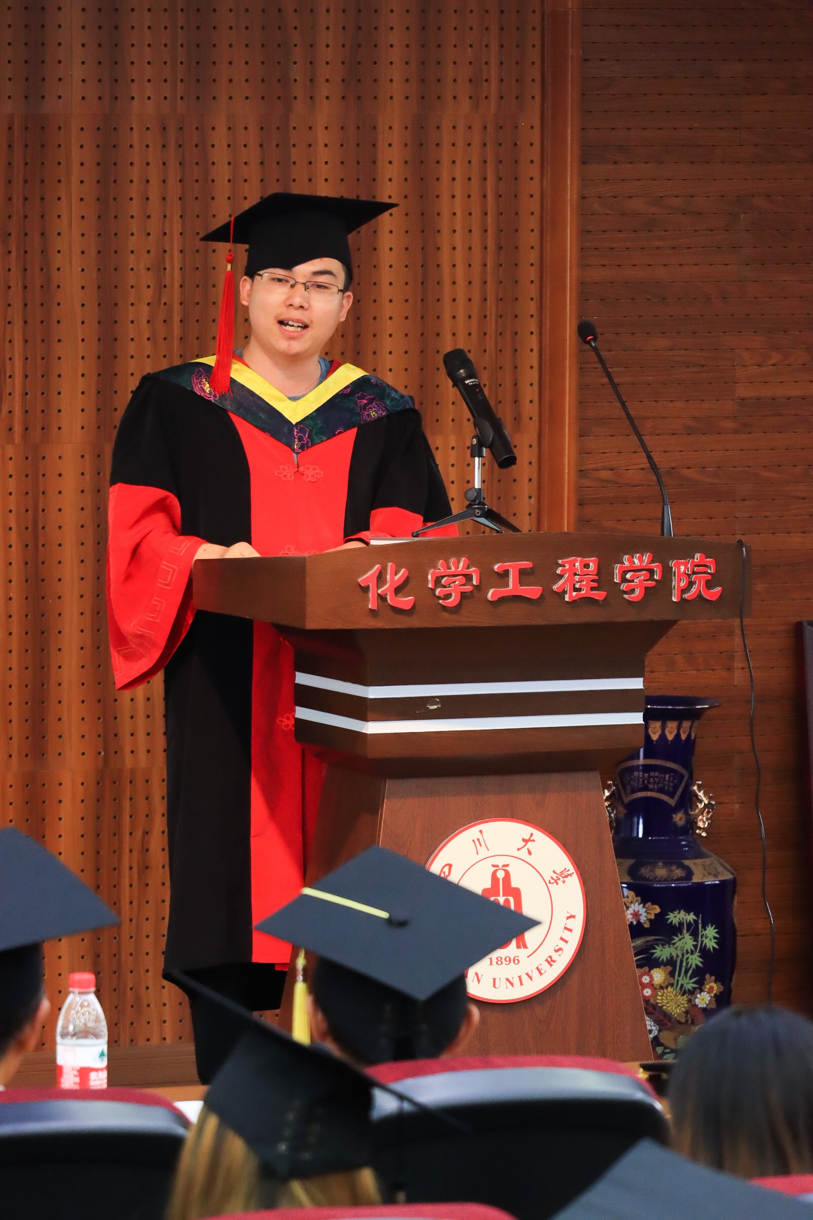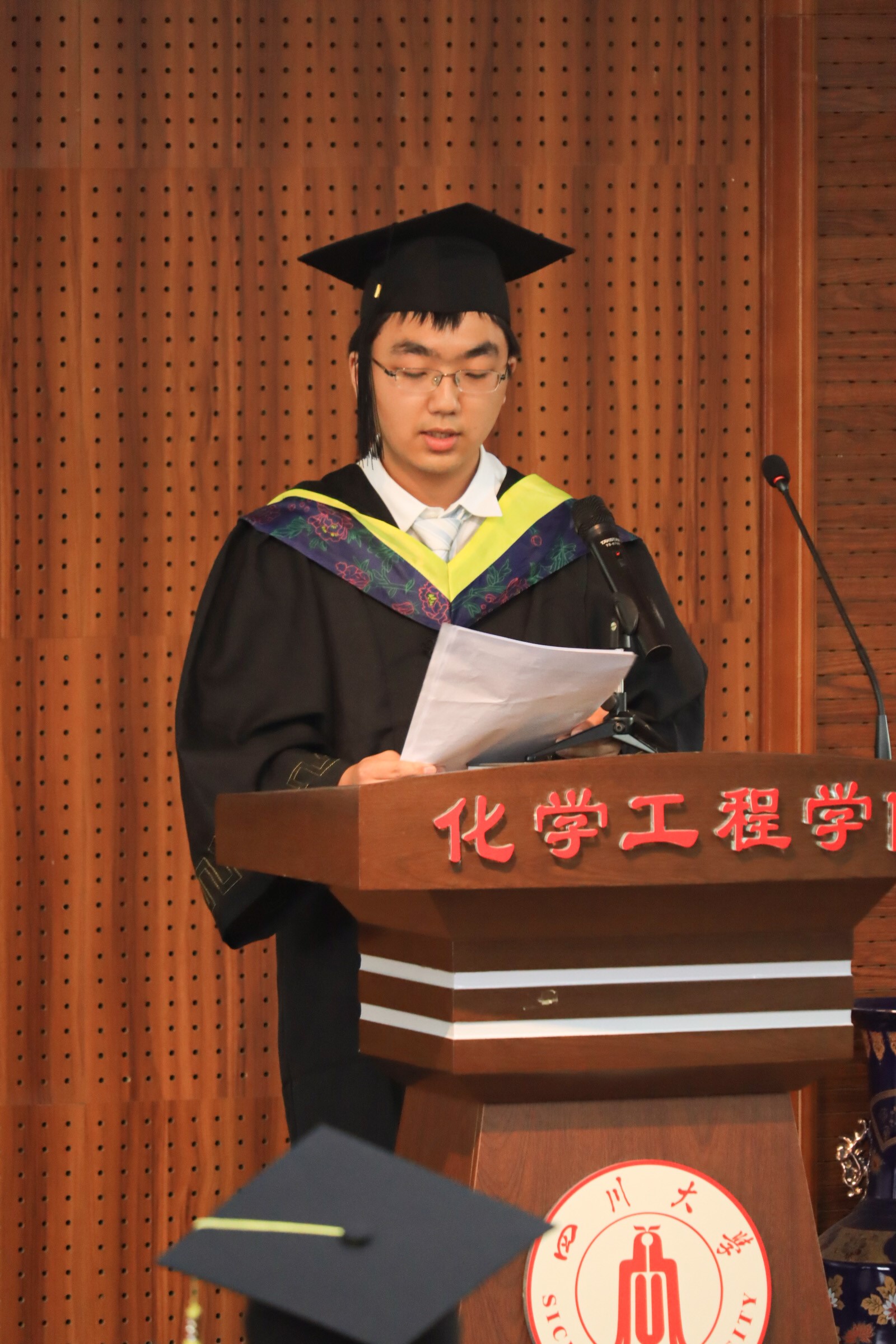 毕业本科生员工代表张宇豪发言,讲述了自己的老员工活。大学四年,是有长度的。对于书本的理解随着年龄的增长和阅历的丰富而逐渐深刻,读书是一辈子的事。大学四年,是有宽度的。川大四载不只是课堂的一隅,而是生活中的方方面面。大学四年,同样是有高度的。面对更加优秀的人,渐渐明白川大学子背后默默付出的努力。