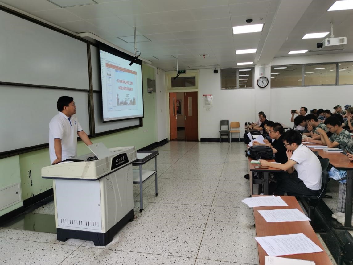 7月16日中午,化工系实训教研室在江安校区一教B102召开2019级化学工程与工艺专业认知实习动员大会。化工系主任袁绍军教授、实习指导老师罗仕忠、吴振国、顾武安、陈建钧、张国权、何坚、宋磊等老师,以及2019级化工专业专业全体本科生参加了会议。会议由吴振国老师主持。
