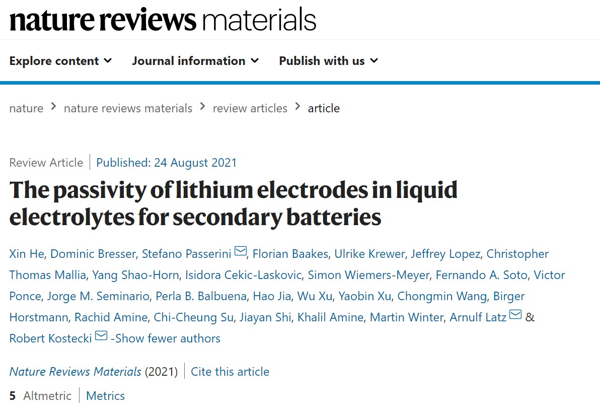 近日,Mksport体育何欣特聘研究员在Nature Reviews Materials发表了题为“The passivity of lithium electrodes in liquid electrolytes for secondary batteries”的研究论文。该文章从一个稍微不同的角度对发生在锂电极-液态电解质界面的反应进行了深入研究,参考了金属上腐蚀和钝化现象的一般概念,并重新审查了相应的、成熟的电化学理论和模型。