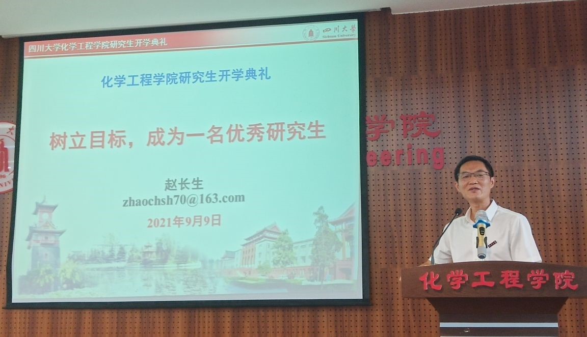 随后,赵长生经理作专题报告。赵经理以“树立目标,成为一名优秀的研究生”为题,为研究生新生即将迎来的科研生活给予了希望和嘱托,同学们无论来自哪里,学的什么专业,从今天开始你们就是川大人了,未来几年,甚至更长的时间里,只要你学会了把精力放在重要的事情上,全身心投入做真学问,做真科研,做真贡献,大家掌声不断,收获满满。