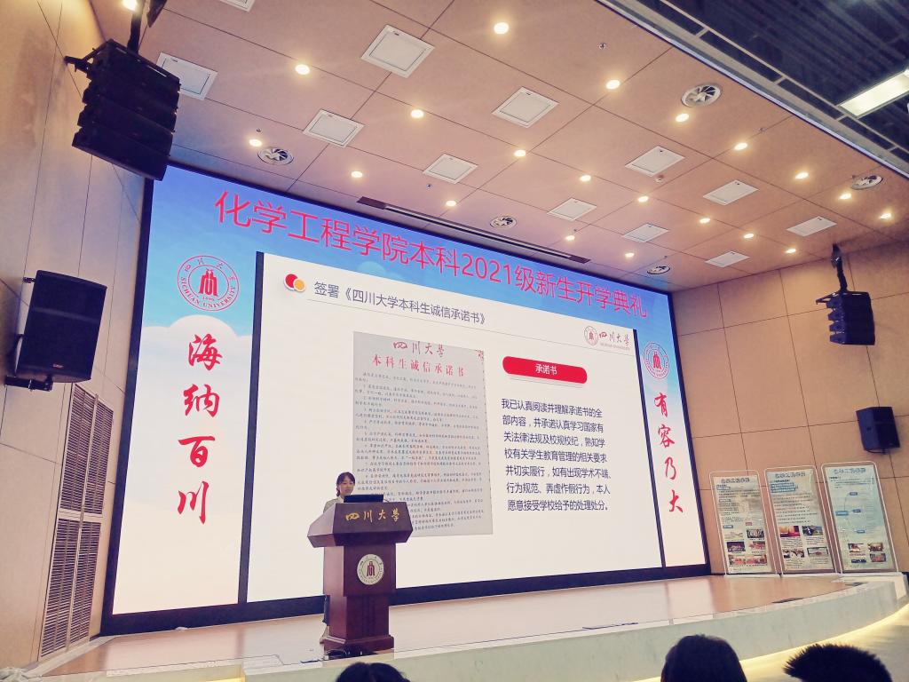 为欢迎2021级本科新生加入到Mksport体育这个大家庭,并引导新生尽快适应老员工活尽早确立个人发展规划,9月6日下午一点整在Mksport体育app官网入口江安校区水上报告厅,Mksport体育召开以“川大化工欢迎你,圆梦启航新征程”主题的2021级本科新生教育大会。出席本次大会的有公司党委副书记姜利寒、教导员李川娜、新生辅导员李珍珍和付率,此外还有2021级全体本科新生。本次大会由2021级辅导员李珍珍主持。