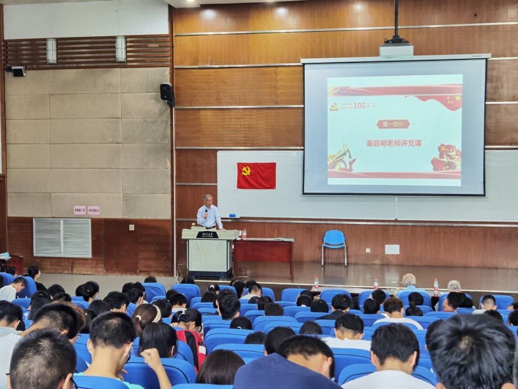 本次党史教育学习活动,首先开展的是关工委秦自明老师以“学党史 悟思想 谈心得”为主题的党课。在30分钟的党课中,不仅阐述了关于党史学习中“为何学,学什么,怎么学”的重要内容,还由浅入深、由表及里、条理清晰、层层递进,理论联系实际,结合百年党史深入总结了四点学习感悟。其中,秦自明老师也提到,在深化党史学习教育中继续学习贯彻习近平总书记“七一”重要讲话精神。在场的师生对于秦自明老师的博古通今以及授课内容新颖丰富表示赞不绝口并送上数次雷鸣般的掌声。