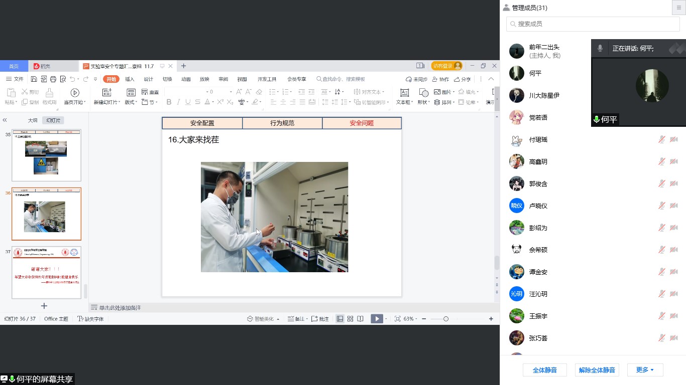 为提高员工的安全防范意识,减少安全事故的发生,本着“安全第一,预防为主”的原则,Mksport体育膜科学与功能材料研究室于2021年11月7日下午组织召开“实验室安全教育”线上专题培训,培训对象为即将进入实验室的毕业论文和大创实验的本科员工。