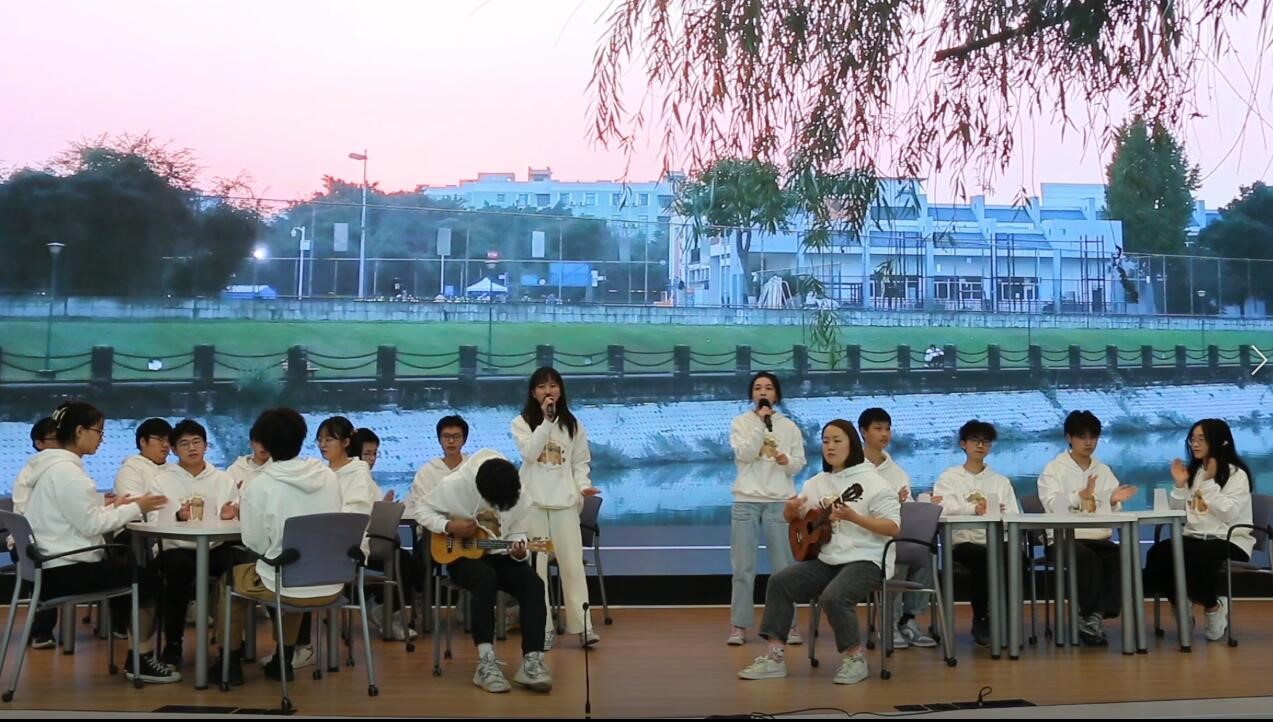 接下来就是激动人心的调研报告展示与班级表演环节。本次活动由于疫情防控的要求,采用了线下同学讲解和播放表演视频的形式。进入决赛的九个班级通过多种方式对调研题目进行研究和拓展,展示了各个班级对不同化工前沿科技的不同理解。绿药10班、互联化工1班等班级采用了问卷调查的形式,在加深自我理解的同时还将前沿知识带去了大川各个院系,让我们的活动获得了更深远的影响力。除此之外,同学们的表演也异彩纷呈。这里有互联化工1班集体参与的弹唱表演,也有互联2班生动活泼的歌曲改编展示;这里有动装3班形式多样的吉他与B-box表演,也有动装1班诙谐逗趣的小品《让化工飞》;绿药4班全体着一色的实验服、倾情歌唱化工;绿药6班则通过小品展示、透过世人对化工专业的诸多误解这一视角展示了化工专业的新生少年坚定所走道路的故事,表现了化工人“干惊天动地事,做隐姓埋名人”的担当和信仰——其间笑点频频,老师、同学们欢声连连;绿药5班亦是通过集体合唱改编歌曲的形式展现出了他们对化工的满腔热情以及班级凝聚力,灵动活泼的歌声深深感染了在场的每一个人。