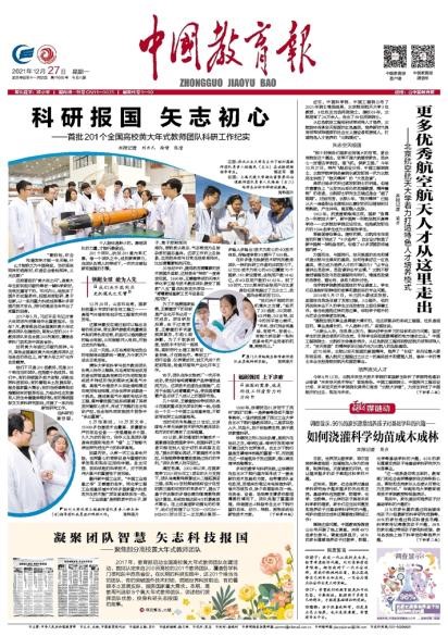 12月27日,《中国教育报》对首批201个全国高校黄大年式教师团队科研工作进行了宣传报道,其中第五版“高教周刊”板块,以“凝聚团队智慧 矢志科技报国”为题,对Mksport体育app官网入口化学工程教师团队先进事迹进行了报道。