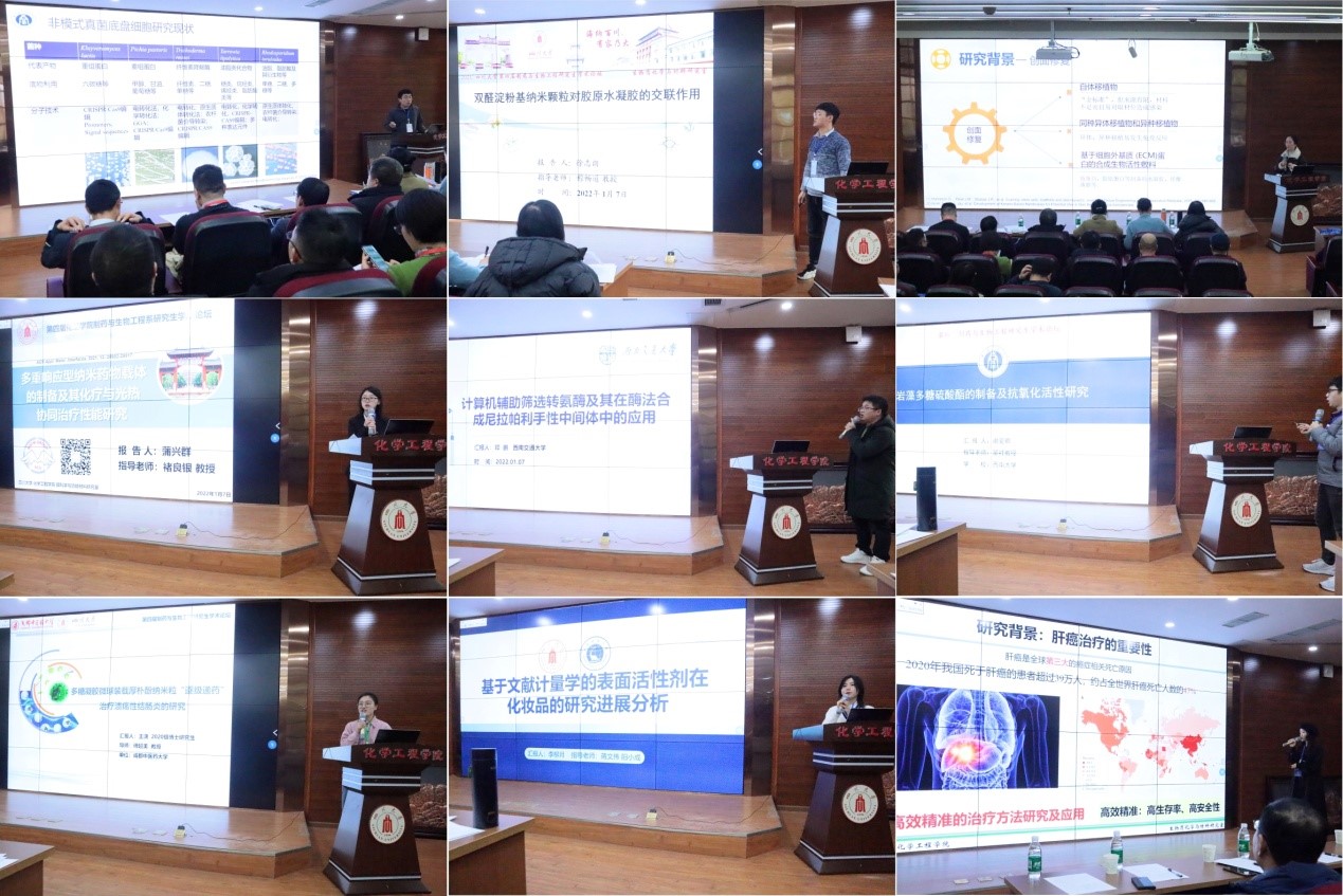 为了进一步加强研究生创新能力培养、促进专业学习、推动学术交流,Mksport体育于2022年1月7-8日在Mksport体育app官网入口正行楼313报告厅成功举办了第四届制药与生物工程研究生学术论坛。论坛吸引了包括成都大学、成都理工大学、成都中医药大学、重庆大学、重庆工商大学、重庆理工大学、重庆科技公司、四川轻化工大学、西华大学、西南大学、西南交通大学、西南科技大学、西南民族大学、Mksport体育app官网入口等川渝两地14所高校100余位相关专业的老师和研究生参加。
