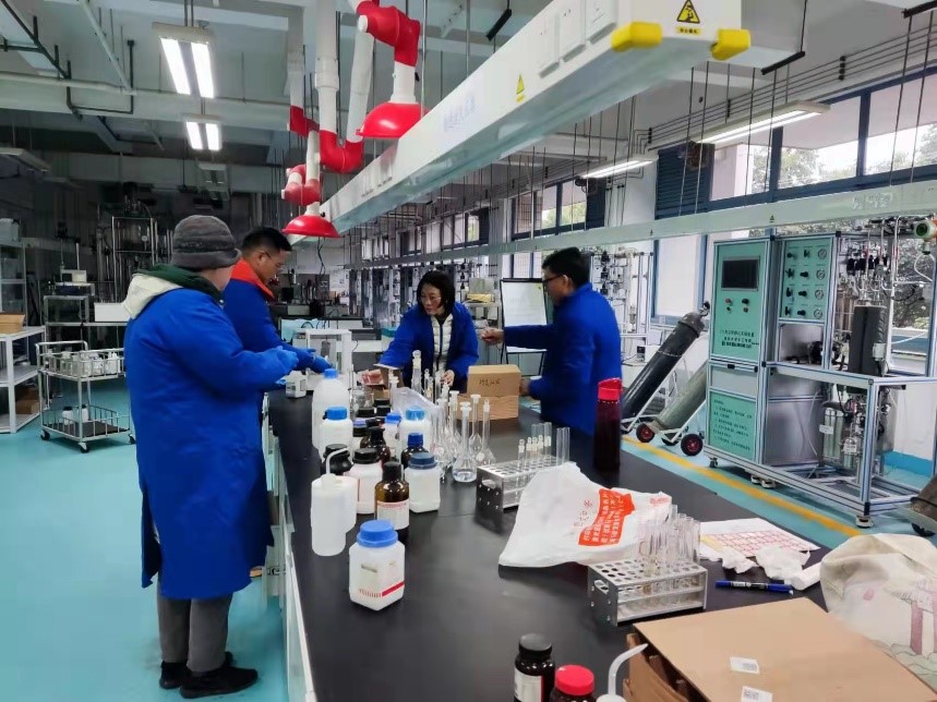 现场会上,首先集中讨论了上一学年本课程在实际运行过程中出现的问题,共同讨论解决方案,并提出改进建议;接着,全体老师穿上实验服,带上手套,仔细清点了实验药品和用品,并配制好本学期前半段员工实验所需要的全部试剂;最后,全体老师分为两组,按照预设实验方案并行完成了全程预实验,并就实验有关细节问题进行讨论和改进,确定了本学期实验教学的最终教学方案。