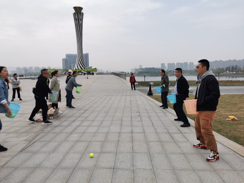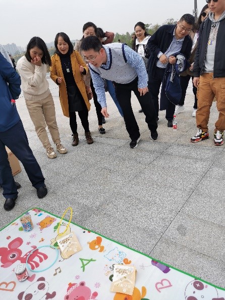 “健步走”活动后,老师们根据个人意愿,分别参加了“踩气球”大赛、抛球入框、筷子夹弹珠等多个趣味运动会比赛项目。趣味运动会的举办使得现场的气氛达到了高潮,也快速增进了两个公司老师彼此的了解。大家纷纷加油鼓掌,呐喊助威,赞叹声、鼓劲声、笑声充斥着整个现场。