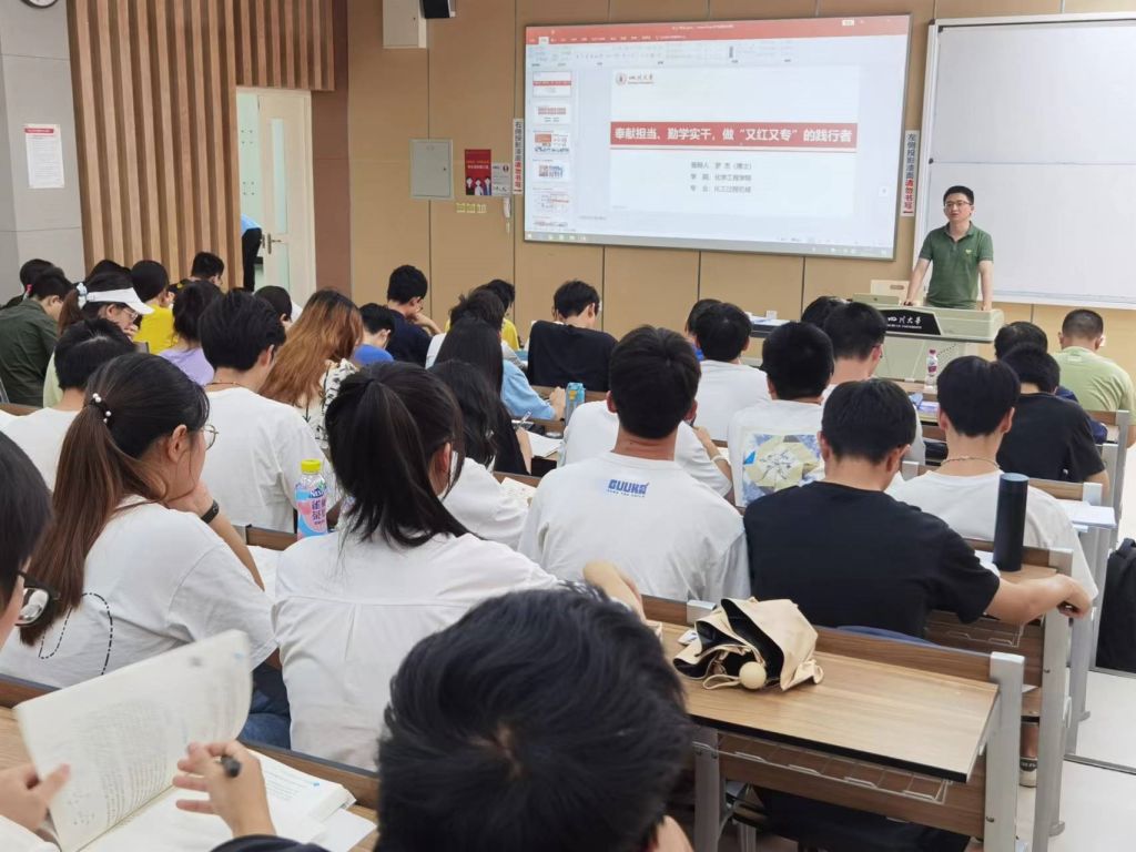 2022年“十佳”研究生罗杰博士,进行了主题为“奉献担当、勤学实干,做又红又专的践行者”分享。他从投身教育扶贫、服务青年成长、引领青年思想、务实科研攻关四个角度讲述了他的成长历程和先进事迹。他提到自己在研究生期间在大凉山为贫困地区支教的经历,向同学们展示了支教团队在面临山区孩童“读书难”问题时提出的“一教,双创,三扶”模式,帮助了许多大凉山的孩子重返学业,实现教育脱贫。此外,罗杰还提到了自己参加志愿活动、服务青年成长、坚持科研攻关等事迹,“奉献与担当是当代青年的精神底色,对社会的贡献度是衡量一个人价值的重要标尺”来勉励同学们不断拼搏不断努力。