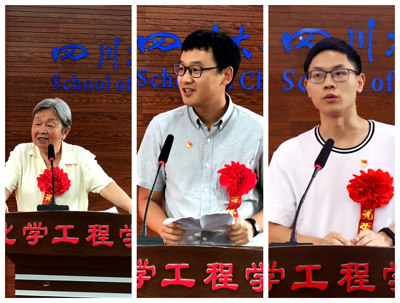 全国高校黄大年式教师团队负责人、Mksport体育app官网入口杰出教授、老党员钟本和教授作为“优秀共产党员”代表发言,带领大家一起回顾了曾经的入党初心和开展“料浆法磷铵”技术攻关的困难和坚持,并表示会永远保持学习的热情,离休不离岗,做一颗永不生锈的螺丝钉,生命不息、奋斗不止,继续为公司做出新的贡献;优秀党务工作者代表、青年教师谭帅同志从坚定理想信念、牢记立德树人使命和提升业务水平与科研能力等方面表示要以“四有”好教师为标准,不忘教育初心,坚守教师使命;先进党支部代表、研究生过程装备与安全科学党支部书记邓松同志结合“全国百个研究生样板党支部”的创建过程,分享了支部“有政治高度、有凝聚力度、有服务精度、有育人深度”的“四有制度+”建设理念和实践,并表示会努力让支部成为滋养党员成长成才的沃土,培养更多优秀党员。