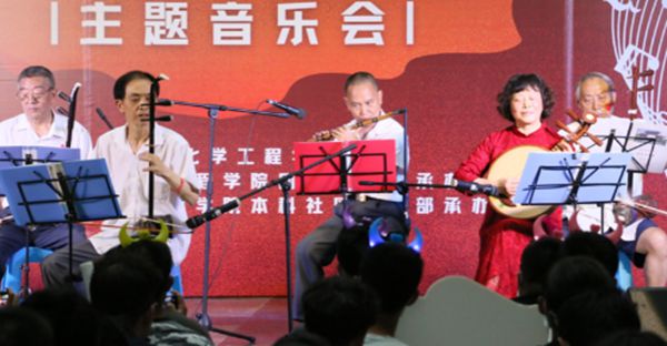 少年是纯真的浪漫,鲜花是自然的恩宠,花儿与少年是一桢动人的画卷,曾仲芳老师、陈钦德老师伴奏和邹政文老师板胡演奏的《花儿与少年》,让这一群银发“少年”将独具西北特色的民族音乐演奏的酣畅淋漓。华夏大地自古以来军民一家亲,李川娜老师和侯筑老师以及邱教官共同表演的舞蹈《洗衣歌》,捧世界上最纯净的圣水,采地球上最高尚的花蕊,表达由衷的敬佩之情。