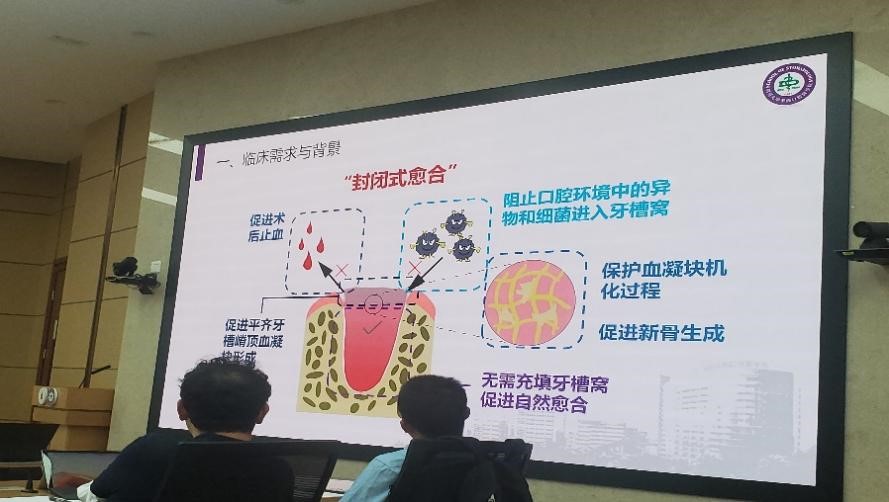 论坛会议上,李天友与华西口腔医公司副书记林云峰首先对双方参会人员进行详细介绍。随后,李精韬、李娟、舒睿、杨惠、甘雪琦、谢利等华西口腔的老师分别就其科室的临床需求和科研瓶颈进行汇报,内容包括颌面组织修复、骨关节炎、骨修复材料、线粒体重编程和牙美白等。会议后半段由穆畅道、吉旭、李向阳、姚舜、王贵欣、邓怡等6位化工的老师,分别就其研究方向、科研成果进行交流汇报,并对“口腔-化工”学科交叉合作前景做出展望。会议过程中,参会同志对其各自感兴趣研究领域及观点进行交流,对科研中遇到的问题和解决办法进行讨论,对如何加强“医-工合作”进行进一步探讨。在畅所欲言中,本次交叉论坛的学术氛围被推至顶峰。