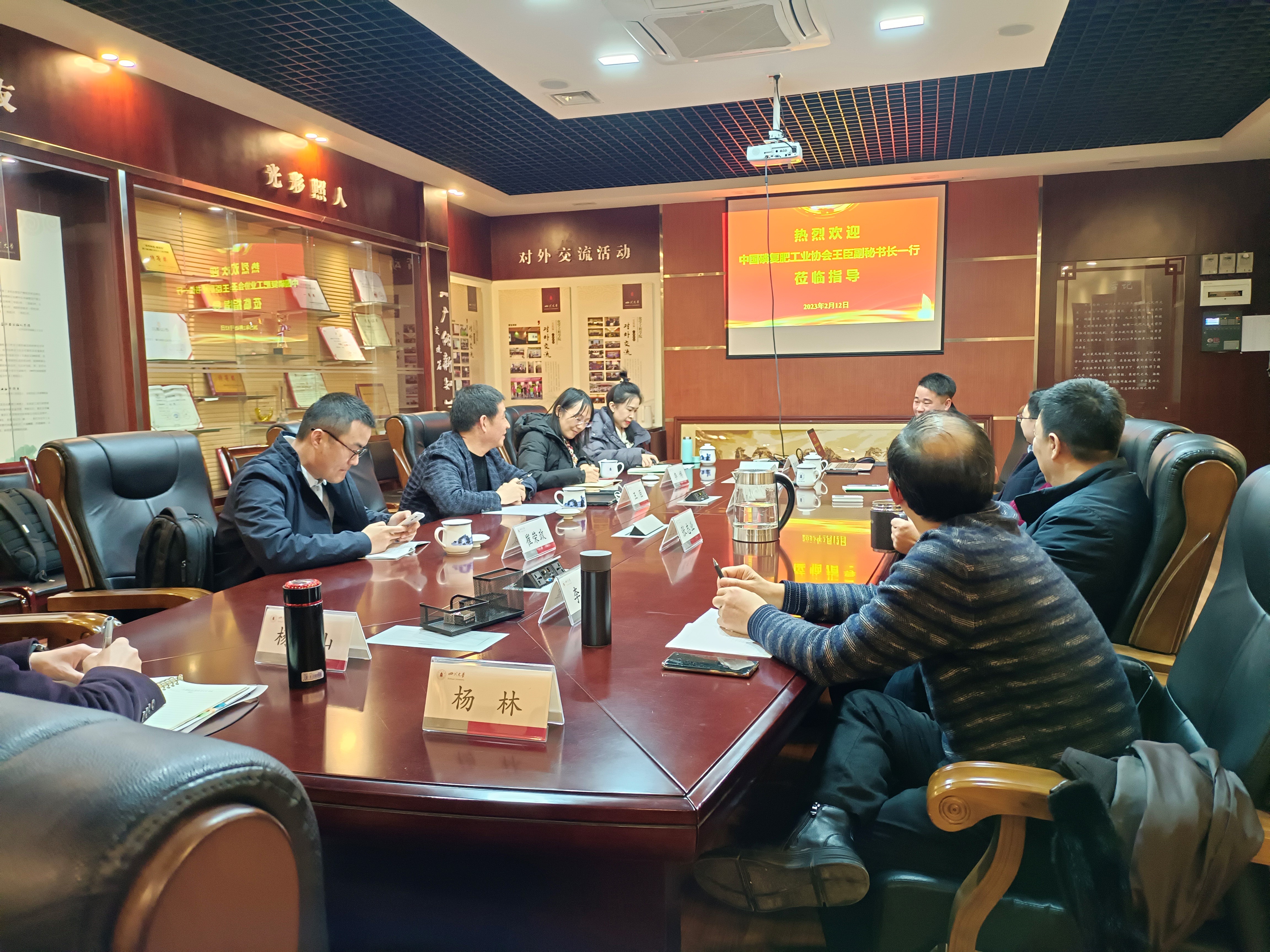 2023年2月12日,中国磷复肥工业协会王臣副秘书长一行到Mksport体育调研,双方围绕磷化工行业绿色发展现状、行业“十四五”发展思路等方面开展交流。Mksport体育app官网入口钟本和杰出教授、公司经理郭孝东教授、张志业研究员、李军教授、王辛龙教授等参加了会议。