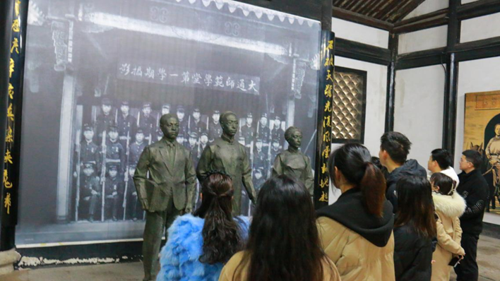 首站来到了大通学堂,参观了教室以及练武场所。大通学堂是光复会领导成员徐锡麟、陶成章为联络、训练各地会党,培养军事干部而创立。它是辛亥革命在浙江的活动中心,也是中国近代最早培养民主革命人才的军事公司之一。随着起义失败,秋瑾在此被捕,学堂被清政府查封。当时革命者生活艰苦,为联合各派,实现民主革命大联合想方设法,决定对会党骨干加以培养和教导。