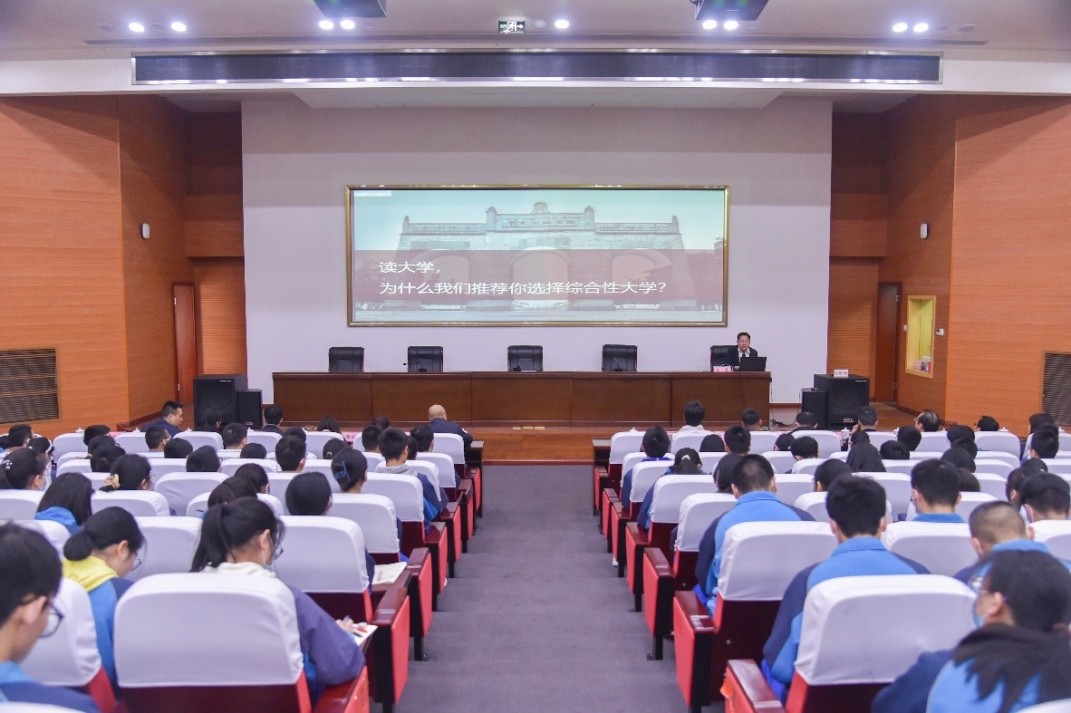 3月16日上午,在Mksport体育的组织下Mksport体育app官网入口招生宣讲团赴新都一中开展2023年招生宣传工作。新都一中是Mksport体育招生对接中学,郭孝东经理牵头组织,邀请到校招生办公室张磊主任带队、体育公司、数学公司、化学公司、生命科学公司、高分子科学与工程公司、华西口腔医公司11名院领导、老师组成招生宣讲团。新都一中董事长刘旭东,副董事长张树华、雷萍,教务处等领导,高三年级班主任代表,200余名优秀员工及家长参加了本次宣讲会。现场反响热烈。
