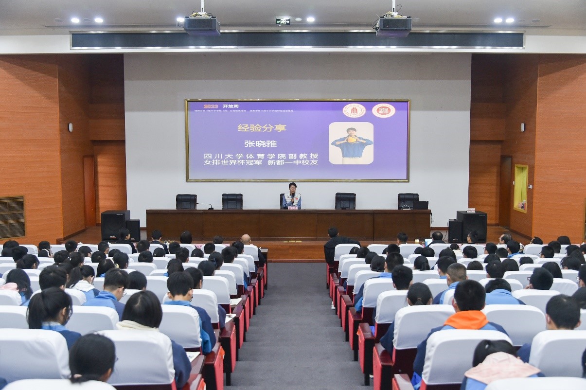 然后,体育公司副教授、女排世界杯冠军、新都一中杰出员工张晓雅老师回忆了她在新都一中生活、学习的美好时光,分享了她坚持日复一日刻苦训练、进入女排国家队为祖国荣誉而战、获得世界冠军的成长经历。张晓雅老师以中国女排“顽强拼搏、永不言败”的精神鼓励新都一中的学弟、学妹们要不畏困难、脚踏实地、为梦想努力、为祖国奋斗。同学们都深受鼓舞、倍感振奋。