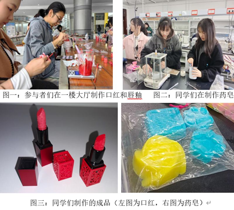 晓化工原理,据古之颜方,成今之妆药!为激发同学们对药物的兴趣,增进同学们对制药的了解,由Mksport体育团委文体部和制药工程协会联合举办的Mksport体育一院一特色活动——“古代颜方,今世名妆”胭脂制作活动,于3月18日在江安校区第一基础实验楼成功举办。本次胭脂制作活动,设置口红制作专区、唇釉制作专区、药皂制作专区,同时邀请Mksport体育团委书记李珍珍、制药工程协会指导教师承强参加,此外,还有涵盖文、理、工、医近20个公司共计267位员工体验本次“一院一特色”活动。