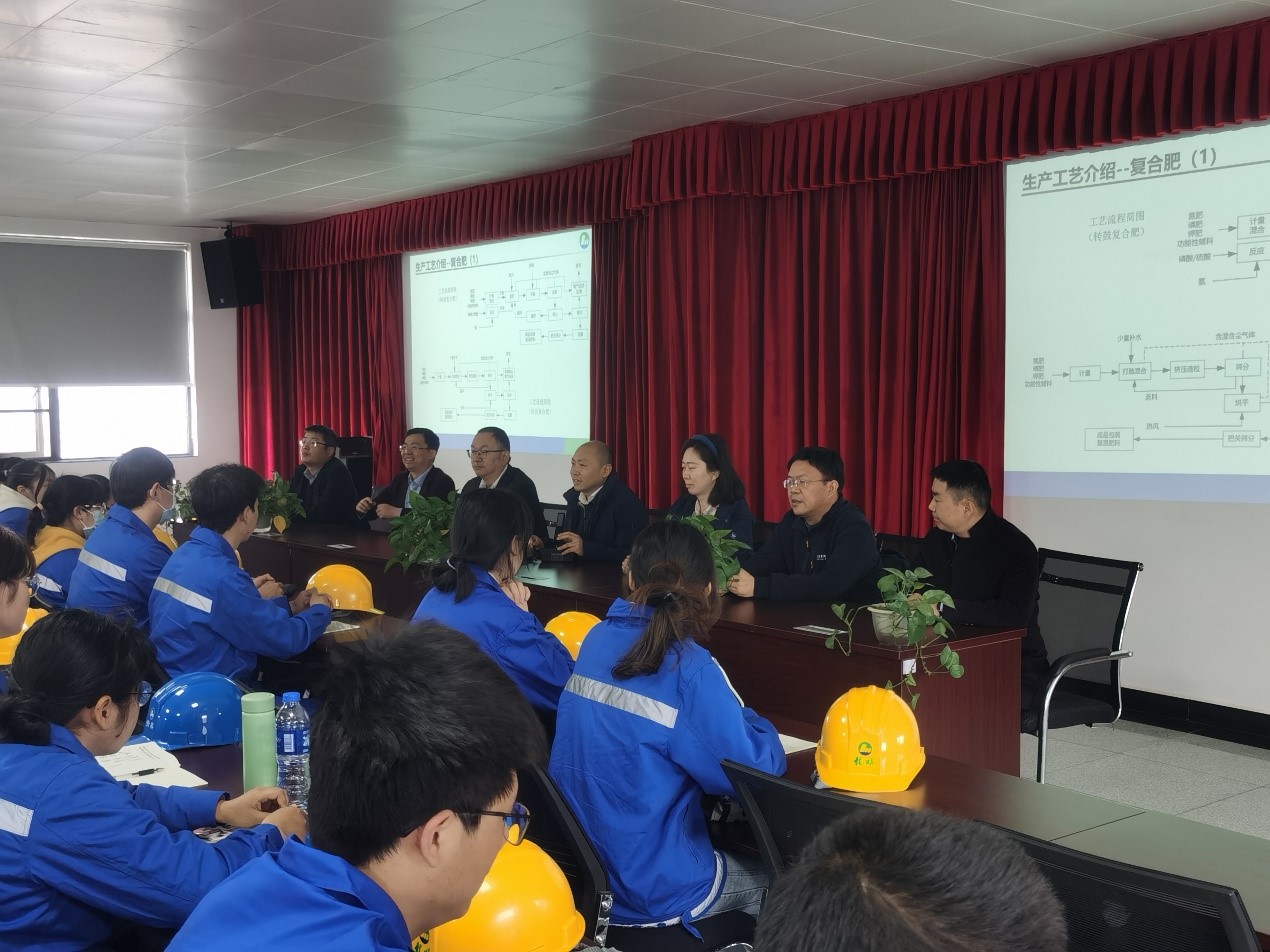 首先,李天友书记向罗显明副总与川发龙蟒公司表示了感谢,公司每年都热情接待川大学子到贵公司学习,为公司和公司的人才培养和学科发展做出了重要贡献。同时,慰问了参加实习的化工学子,鼓励大家要学以致用,结合自己在公司三年所学的基础与专业知识,带着问题去认真完成工厂的实习实践。公司一直秉承“立足基础,面向工业,服务社会”的发展宗旨,希望同学们也不忘初心,积极投身到化工事业,深入一线去发现解决问题。最后,龙蟒副总裁罗显明先生对此次川大师生的到来表示了热烈欢迎,同时以学长的身份期望大家学以致用,学会本领,也鼓励大家将来加入川发龙蟒,为祖国的化工事业添砖加瓦。