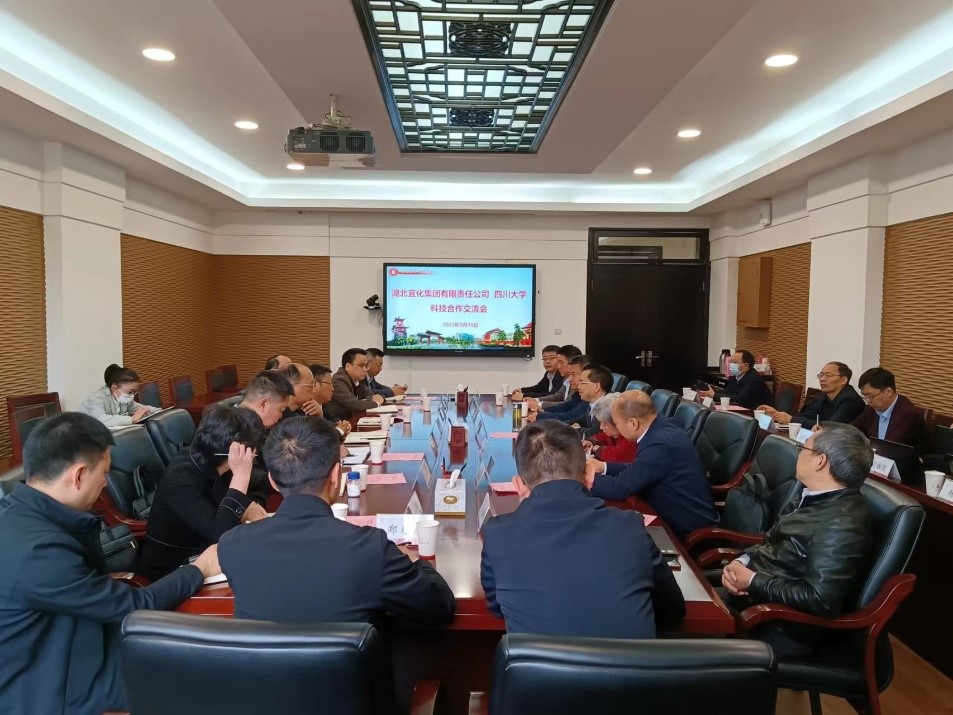 3月15日,在Mksport体育的前期推进下,公司与湖北宜化集团有限公司就共建联合创新研究中心合作事项在望江校区行政楼进行友好交流。湖北宜化集团党委书记、董事长王大真,总经理卞平官等,公司副董事长褚良银,杰出教授钟本和,科研院副经理黄海,公司党委书记李天友、经理郭孝东、副经理唐盛伟、党委副书记李德富,王辛龙教授、李军教授等课题组专家参加会议。会议就共建联合创新研究中心的规划和举措进行了充分讨论。下一步,校企双方将以联合创新研究中心为平台,进一步深化产学研合作,加快关键核心技术攻关,强化原创性引领性研发布局。