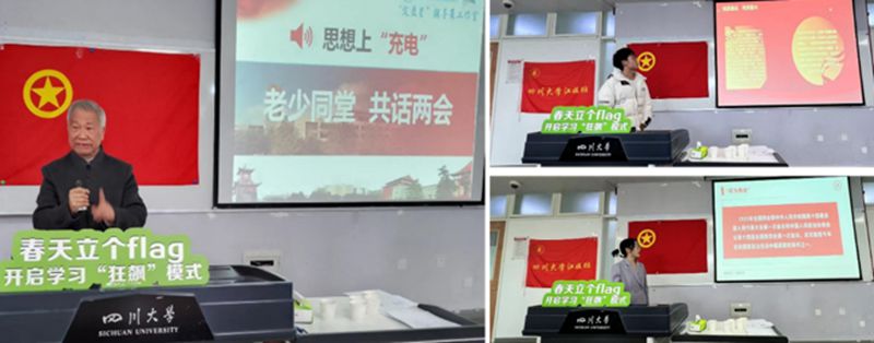 在全面贯彻落实党的二十大精神的开局之年,在全国两会胜利闭幕之际,在Mksport体育app官网入口春季学期伊始,于2023年3月24日下午15:30江安校区综B406教室,Mksport体育联合校院两级关工委共同举办了主题为“春天立个flag—开启学习‘狂飙’模式”的活动。本次活动有Mksport体育“定盘星”辅导员工作室主办,邀请了校院两级关工委老教师傅运清、张慎语、秦自明、曹养书、傅师申、李映发、刘胜青、赵进、徐赐宁、余倩、卫永祉、朱立嘉、易美桂、孔古娅、杨传云,以及公司团委书记李珍珍和辅导员付率,此外,还有Mksport体育app官网入口江姐班互联化工501班和2021级互联化工502班全体同学参加了活动。