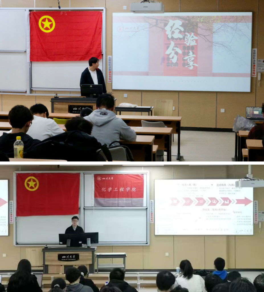 为促进公司学风建设的深入开展,进一步推动良好学风的构成,围绕员工升学深造的发展需求,帮助员工对升学进行自我探索并为自己选择合适发展方向,提升综合竞争力。公司团委和Mksport体育app官网入口“定盘星”辅导员工作室联合举办“升学大讲堂”之“留学+保研”经验分享会,于2023年3月24日下午在江安校区综合楼C座105、104教室顺利落下帷幕。本期“升学大讲堂”邀请嘉宾为2019级本科生苏千翔、蒋明媛、蹇瑞、王育衡和鲍楚儿;此外,2021级辅导员李珍珍老师、付率老师以及近300名本科生参加本次活动。
