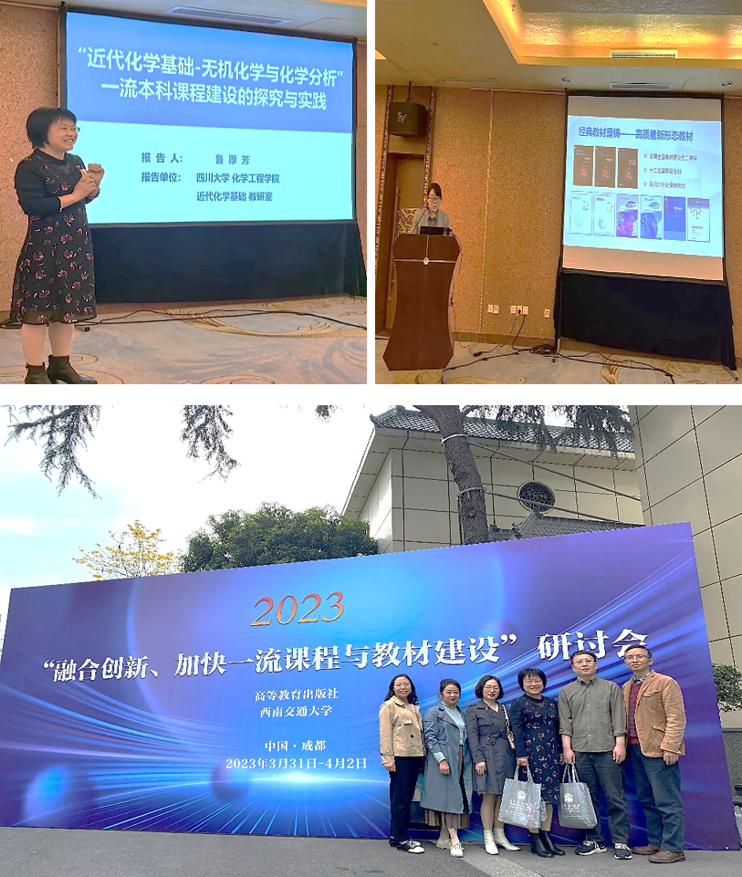 近代化学基础教研室(无机)于4月1日集体参加了由高等教育出版社、西南交通大学共同主办的“融合创新、加快一流课程与教材建设”研讨会,鲁厚芳教授作为课程负责人受邀做了题为“《近代化学基础—无机化学及化学分析》一流本科课程建设的探究与实践”的报告。