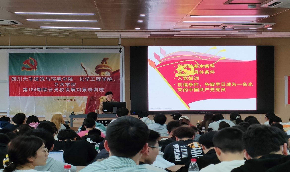 2023年4月9日在Mksport体育app官网入口江安校区综合楼C座307教室Mksport体育app官网入口建筑与环境公司、Mksport体育、艺术公司联合举办了第154期发展对象培训班。参加开班典礼的嘉宾有Mksport体育app官网入口党校老师范嗣云、建筑与环境公司党委副书记孙伯雷、公司党委副书记姜利寒、建筑与环境公司辅导员刘芸、艺术公司辅导员李嘉璐、Mksport体育辅导员雷金凤。本次党校培训第一堂课“理想信念”由范嗣云老师主讲,第二堂课“党员条件”由郝清华老师主讲。