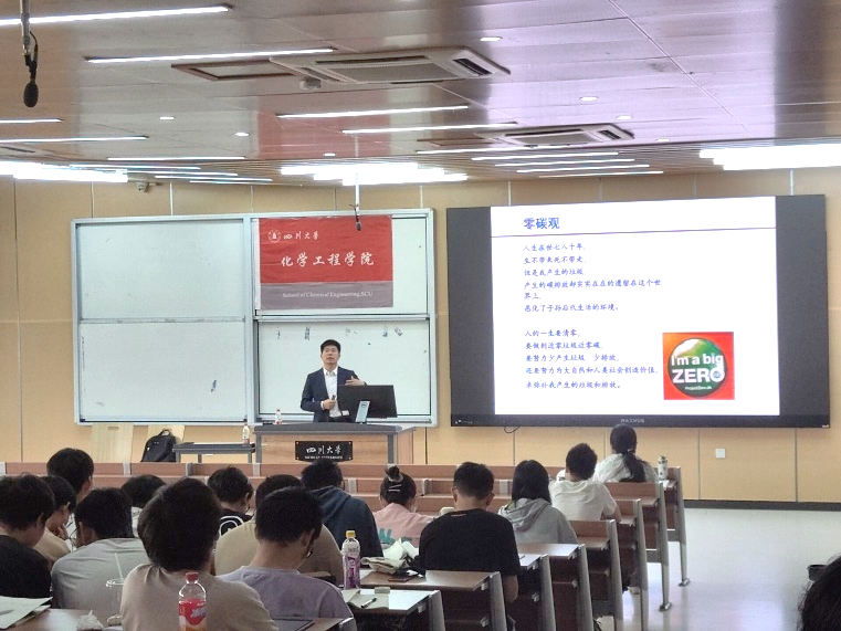 随后,岳海荣教授以温室气体和温室效应为切入点,向同学们传达了国家对于碳中和的重视,以及碳中和对于国家发展的重要性。讲完了国家需求,岳教授又带领同学们一起从国际视野来分析碳中和,层层递进地介绍了全球变暖的危害,强调了碳中和对于国际发展的必要性和紧迫性。接着,岳教授展示了中国零碳路线图,将碳中和与新时代中国化工的发展结合在一起,分析了人工碳中和技术路线,让同学们系统地了解了碳中和研究方向,并进一步展望了碳中和相关的化工行业发展前景。在岳海荣教授的指导下,同学们树立了更加清晰正确的零碳观,并决定从自己做起、从日常生活中做起,为中国的碳中和发展做出自己的贡献。