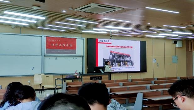 围绕太阳能转化技术,周雪梅教授介绍了相关新型技术,包括塑料制氢技术,高分散单原子技术等,讲解了共催化反应器设计及微反应设计并介绍了工作原理及优缺点。最后,周教授对同学们提出的问题进行了耐心的解答,同时对大家能在未来为碳中和做出贡献表示殷切期盼。