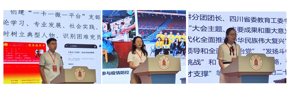 各高校样板党支部进行了“党的二十大”活动经验分享和成果展示。Mksport体育app官网入口华西口腔医公司牙体牙髓研究生第二党支部王海溦同志分享了党支部“一卡一微一平台”的支部建设法。西南石油大学机电工程公司钻井提速科研团队党支部何灵同志阐明了“二十大精神赋能支部阵地建设、新征程赶考践行党员初心使命”的主题。成都中医药大学针灸推拿公司博士党支部李雪梅同志展示了“个人学·集体议·专家讲·榜样带·实践悟”五位一体的二十大精神学习模式。