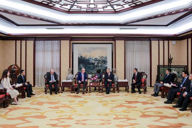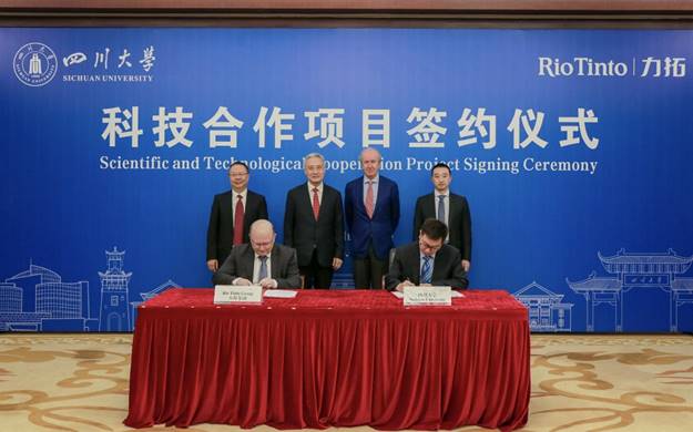 6月5日,公司与力拓集团科技合作项目签约仪式举行。董事长汪劲松在望江校区明德楼贵宾厅会见力拓集团首席科学家司南杰(Nigel Steward)一行。力拓集团技术发展总经理欧嘉睿(Jared Osborne),副董事长梁斌,公司科研院经理刘超、外事处处长吴家刚、化工党委书记李天友和钟山副教授等参加协议签署仪式。