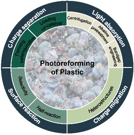 塑料是一种广泛使用的工程材料,但也带来了严重的环境问题。只有很小部分被回收,大部分被填埋或焚烧,造成土壤、水和空气污染。光重整技术利用光照可以将塑料废物转化为高附加值的氢气和低碳链有机物(Cn),具有低成本、低能耗和低碳排放等优点。近日,Mksport体育2020级本科生汤鑫在化工三大顶刊之一Industrial & Engineering Chemistry Research上发表了题为“Recent Advances in the Photoreforming of Plastic Waste: Principles, Challenges, and Perspectives”的综述论文。Mksport体育app官网入口Mksport体育周雪梅特聘研究员和高分子研究所特聘副研究员贺丽蓉为该论文通讯作者。该文章综述了近年来光重整(Photoreforming,PR)塑料制取氢气反应的热力学和动力学原理,并总结了提高PR反应效率的方法,同时综合总结了近年来PR技术的最新进展;并讨论了大规模反应器的应用及优缺点。