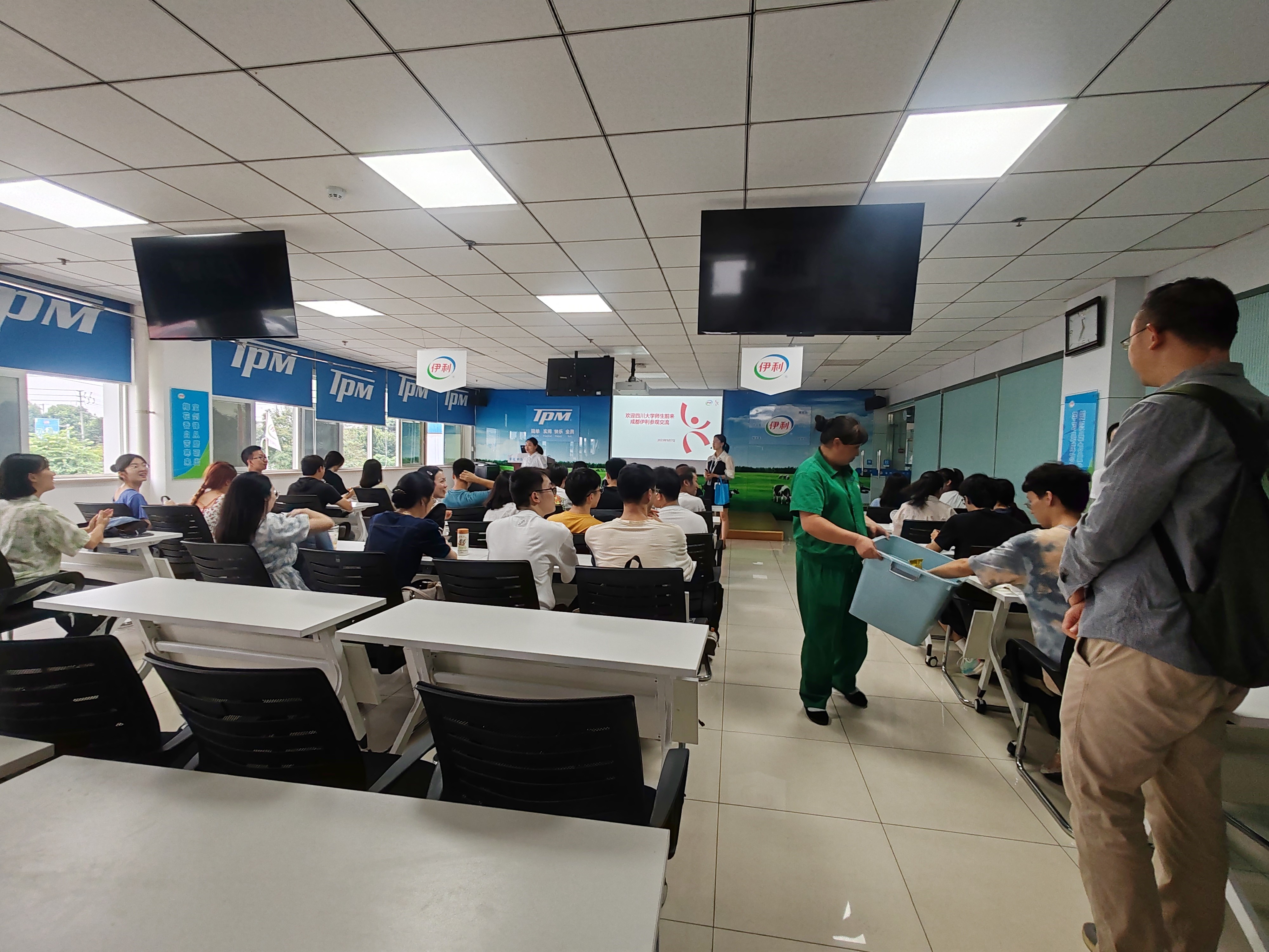 在了解完伊利乳业的生产模式、技术创新和车间生产之后,伊利乳业的人力资源部代表与师生们进行了深入交流,并给同学们分发雪糕。她强调,乳业作为一个快速发展的领域,需要大量的专业人才来支撑和推动行业的创新和发展。同时,代表还强调了创新精神和团队合作等企业文化在乳业发展中的重要性,这些精神品质推动伊利乳业勇于探索和尝试新的思路和方法,挑战传统观念,推动乳业的创新和变革。