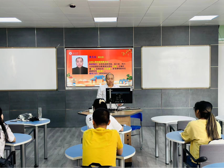 本次班主任见面会于2023年9月13日上午9点在江安校区综合教学楼B306教室举行。参加活动的有公司党委书记李天友、鲍泽威副教授等两位班主任以及辅导员帕哈尔定老师。见面会由帕哈尔定老师主持。