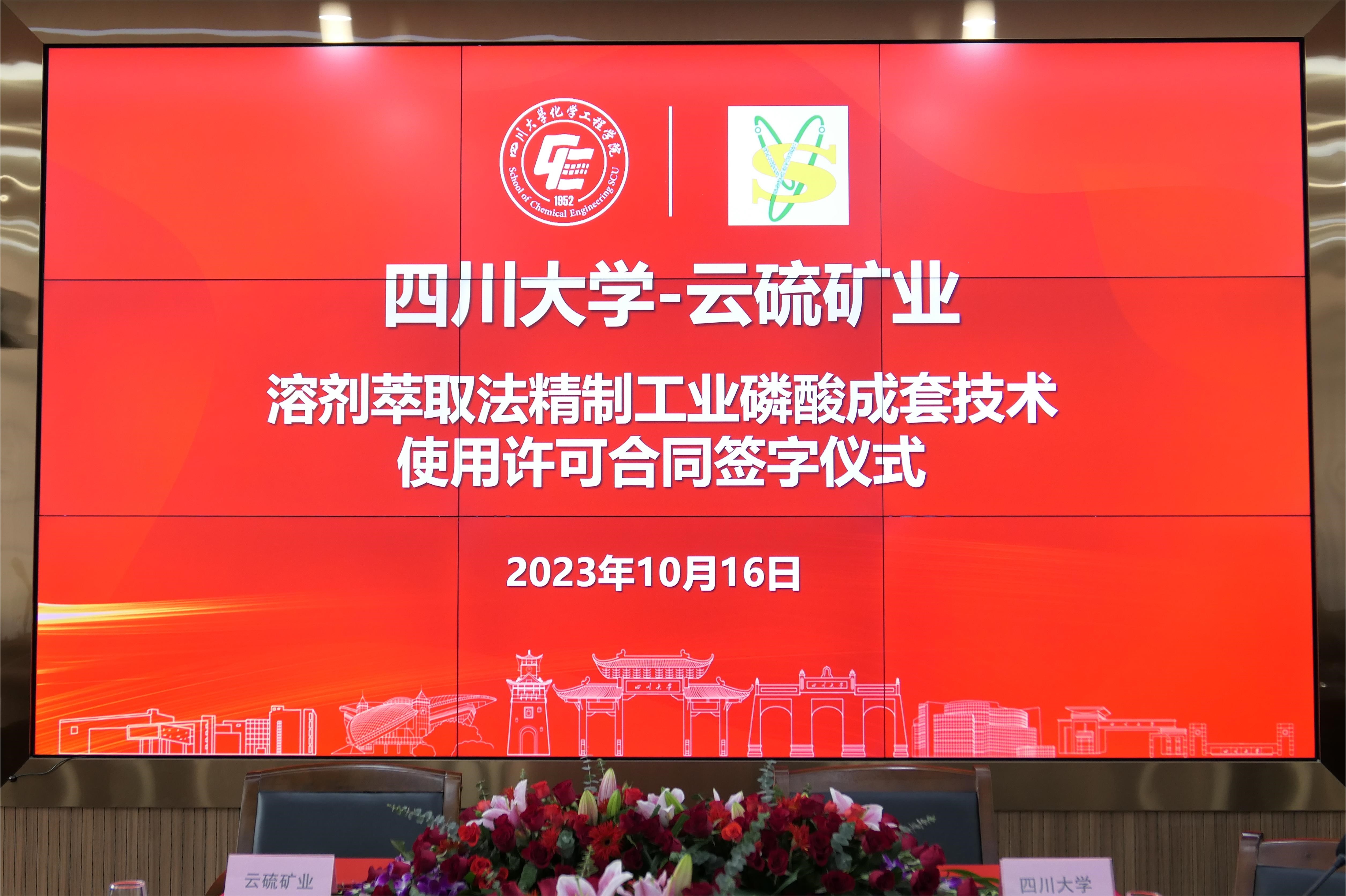 10月16日下午于Mksport体育app官网入口望江校区Mksport体育312会议室顺利举行了Mksport体育app官网入口-云硫矿业溶剂萃取法精制工业磷酸成套技术许可合同签字仪式。广东广业云硫矿业有限公司总经理徐晓华、云浮广业硫铁矿集团有限公司投资发展部部长温小军、投资发展部副部长刁伟东、投资发展部主任陈亮,Mksport体育杰出教授钟本和、党委书记李天友、李军教授及Mksport体育相关老师和员工代表等出席了本次签字仪式。本次会议由Mksport体育副研究员陈明主持。
