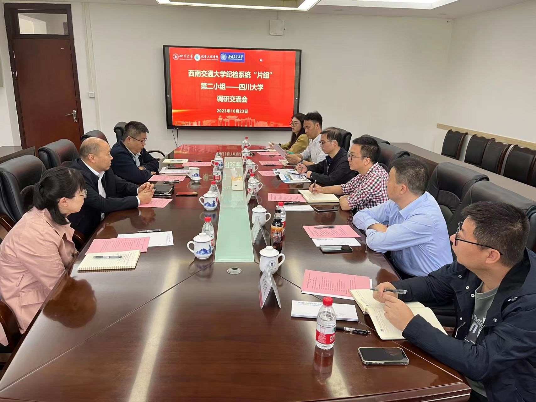 10月23日下午,西南交通大学纪检系统“片组”第二小组来院开展交流座谈。西南交通大学监察处副处长兼纪委办副主任、监督检查室主任杨育鸿,力学与航空航天公司党委副书记、纪委书记孔祥彬,人文公司党委副书记、纪委书记郭立昌,数学公司党委副书记、纪委书记黄祥、力学与航空航天公司专职组织员梁碧波和人文公司团委副书记刘晗悦参加会议,Mksport体育app官网入口公司党委书记李天友,党委副书记兼纪委书记李德富,综合管理科科长杨谨瑗和党建科科长高敏参加调研会。