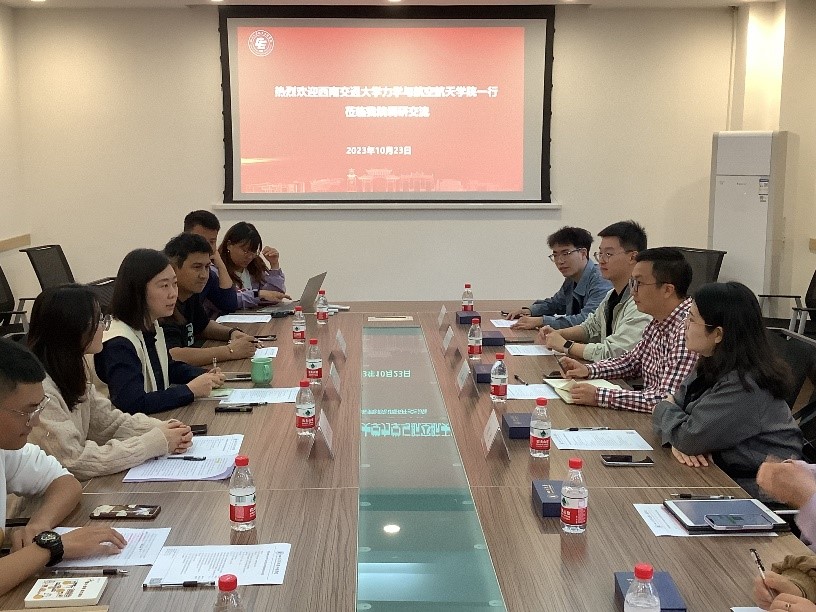 2023年10月23日16:00,西南交通大学力学与航空航天公司党委副书记孔祥彬莅临公司开展员工管理、员工工作经验调研交流,西南交通大学力学与航空航天公司研究生辅导员熊兰、本科生辅导员安晨斐、免研辅导员唐珂和研究生会6名骨干成员随行。公司党委副书记姜利寒、员工科科长帕哈尔定、研究生辅导员兼研会指导老师杨秀英对孔祥彬一行表示热烈的欢迎。本次调研交流活动于Mksport体育app官网入口望江校区Mksport体育227会议室进行。