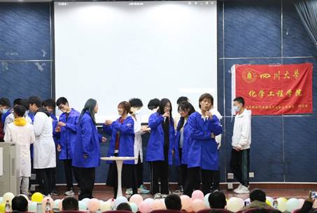 比赛也正式拉开序幕,各班级的表演形式丰富多样,内容精彩纷呈,为大家带来了不一样的化工故事。比赛开始,401班一首合唱《仰望星空》带动了现场气氛,同学们的歌声响彻会场,也点燃了大家的热情。紧接着是305班的同学带来情景剧《化工之光,洪沅之路》,让我们见到了不一样的化工先辈。接着上演的有《我相信》、《明天会更好》,一首首歌曲展望了化工辉煌的未来,也深深鼓舞着新时代的化工人。