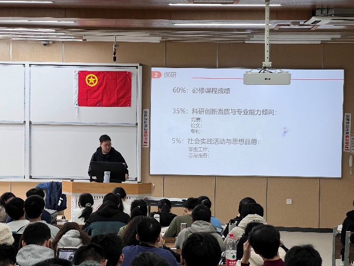 为促进公司学风建设的深入开展,围绕员工升学深造的发展需求,帮助员工对升学进行自我探索并为自己选择合适发展方向,提升综合竞争力。2023年11月24日,江安校区综合楼C座207教室,“升学大讲堂”之“保研+竞赛”经验分享会顺利举行。本期“升学大讲堂”邀请嘉宾为2020级化学工程专业博士研究生李浩宇、2020级本科制药工程专业徐钊以及2020级本科过程装备与控制工程专业李明扬。此外,2021级辅导员李珍珍老师、付率老师以及2021级全体本科生参加本次活动。