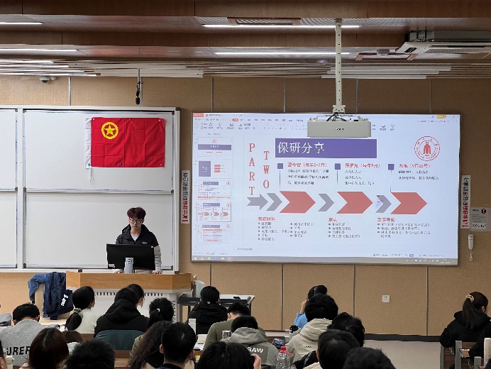 接下来,2020级徐钊同学带来了个人的保研经历分享,徐钊同学曾获得化工实验大赛全国特等奖,并以专业第一的优异成绩成功保送至浙江大学。他重点分享了以下几点经验:一是大三应该提前明确生涯规划,确定生涯方向早做打算;二是保研战线也很长,要明确目标院校和导师,注意各个重要时间节点,抓住机会,提前做好充足准备;三是保研准备的过程会比较煎熬,要保持良好的心态,积极乐观,多交流沟通,整理筛选有用信息。要有理想有想法,懂得去“包装”自己,让自己的才华充分得到展示和欣赏。