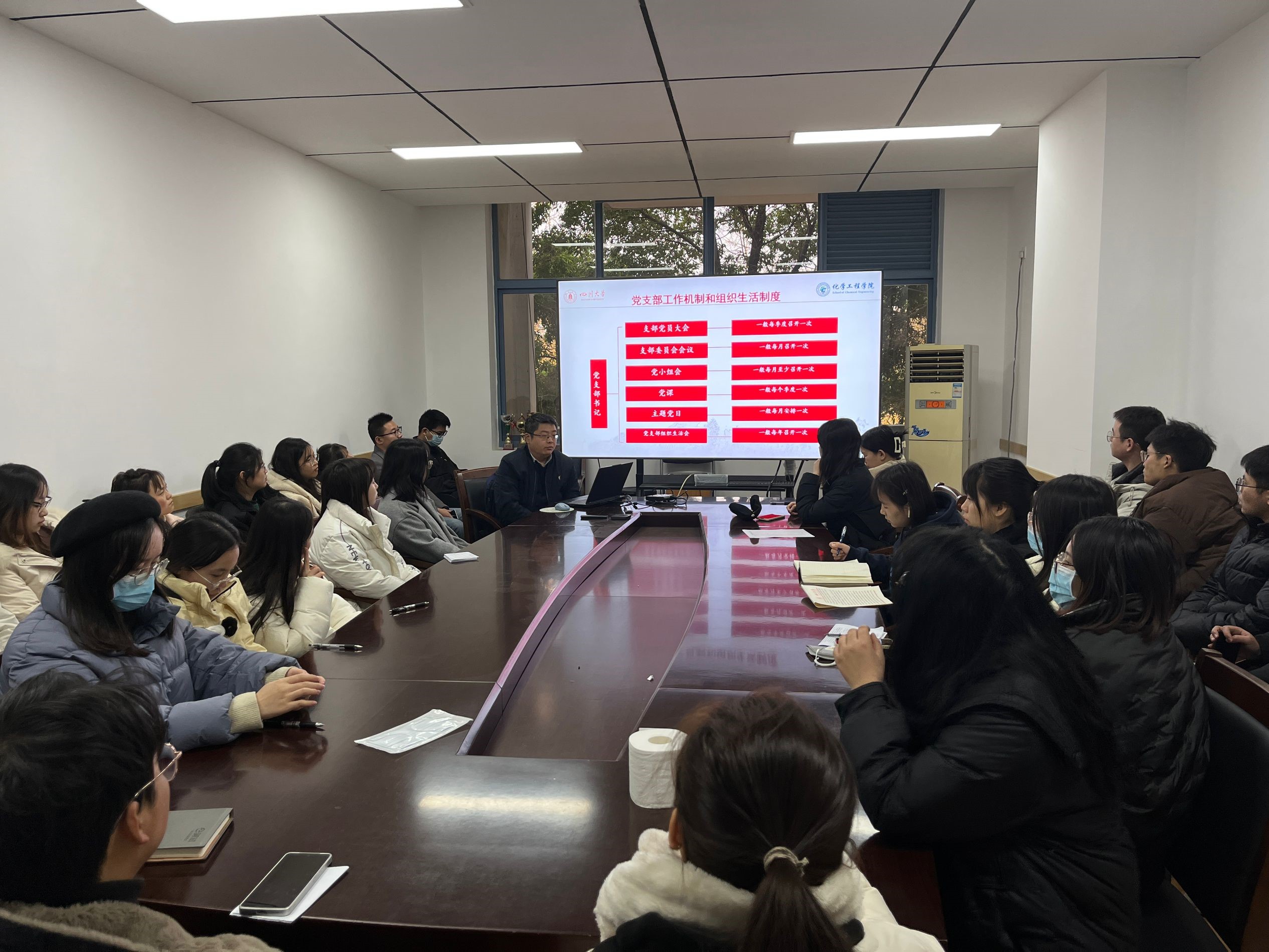 在学习中,李德富书记的讲解深入浅出,许多同志都积极发言,参与讨论。首先,李德富书记带领大家回顾和学习了习近平总书记关于加强新时代党支部建设的重要指示精神。他强调,研三支部作为党的基层组织,理应在学习、生活和科研关心、帮助其他同学,并要进一步增强理论自信,坚持用马克思主义中国化最新成果武装头脑、指导实践、推动工作。此外,还强调我们作为员工党员,必须落实一切工作到支部,在“火车头”支部书记的带领下进一步提升组织力,树立党的一切工作到支部的鲜明导向。接下来,李德富书记带领大家对《中国共产党支部工作条例(试行)》进行了深入浅出的解读,从党支部功能定位、设置方式、成立流程和委员会建设等多方面进行了介绍,并要求研三支部紧密围绕着党支部的基础组织、基本单元和战斗堡垒,切实打牢党支部的全部工作和战斗力基础。此外,李德富书记还重点介绍了“三会一课”、主题党日等组织生活制度。